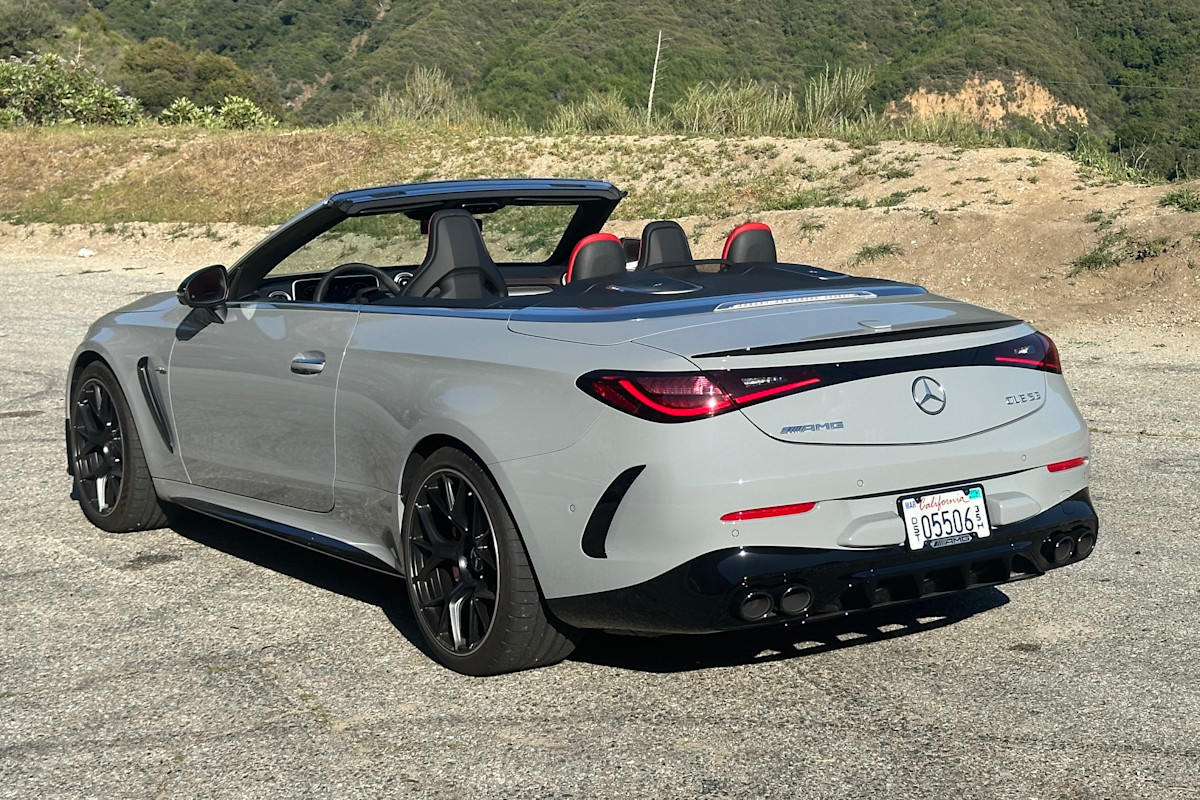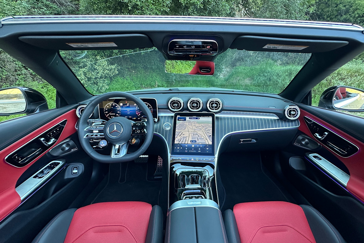 The CLE is available in 300, 450 or AMG CLE 53 trims in either hardtop or convertible body styles, with standard 4Matic all-wheel drive (AWD). Our AMG convertible arrived with a grey soft top and Alpine Grey paint — a bit of a disappointment when the company offers a brilliant Sun Yellow or Patagonia Red Metallic. Or how about the Obsidian Black Metallic with the red soft top? Yes, please! Anything but grey on grey.