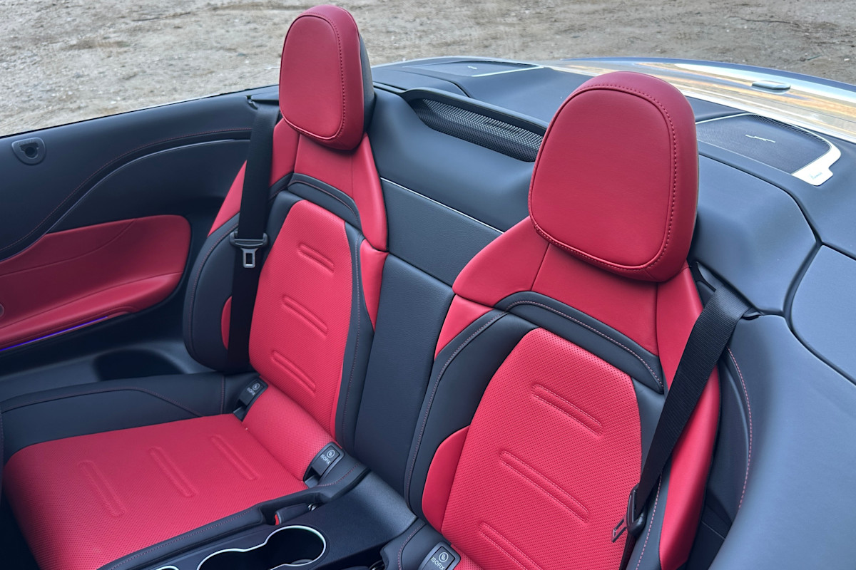 The hardtop version of the CLE allows for 420 litres of space in the trunk, but the convertible takes that down to just 295 litres of cargo capacity with the roof down and 385 litres with it up. That’s still enough for two carry-on luggage pieces, but you might end up using the rear seats as storage for longer trips. Otherwise, those seats are best left for kids or very small adults. Mercedes hasn’t published the official numbers for rear seat legroom, but it ain’t much.