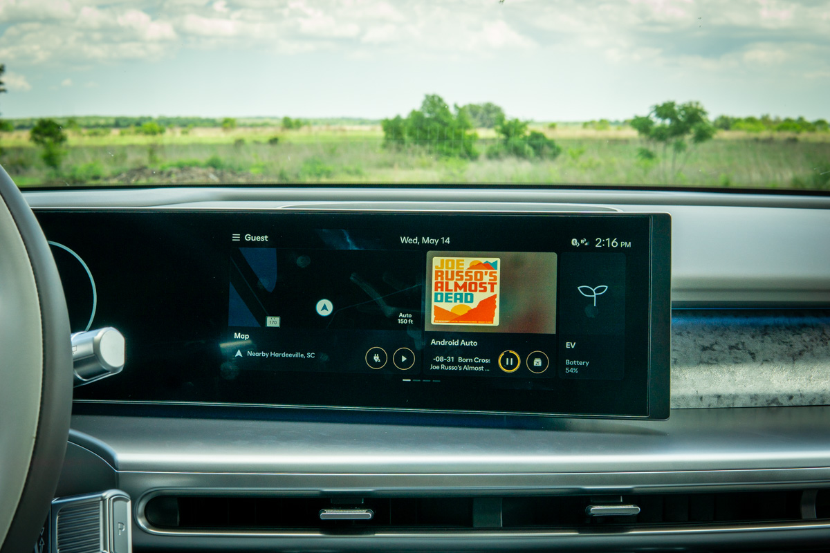 SiriusXM Satellite Radio capability is standard fare in the Ioniq 9, as are wireless Android Auto and wireless Apple CarPlay. A wireless charging pad comes standard as well, but we found it couldn’t keep up with our Google Pixel 9 phone’s battery demands while projecting Android Auto. The charging pad also isn’t ventilated, and as a result our phone got awfully toasty while driving on a hot day.